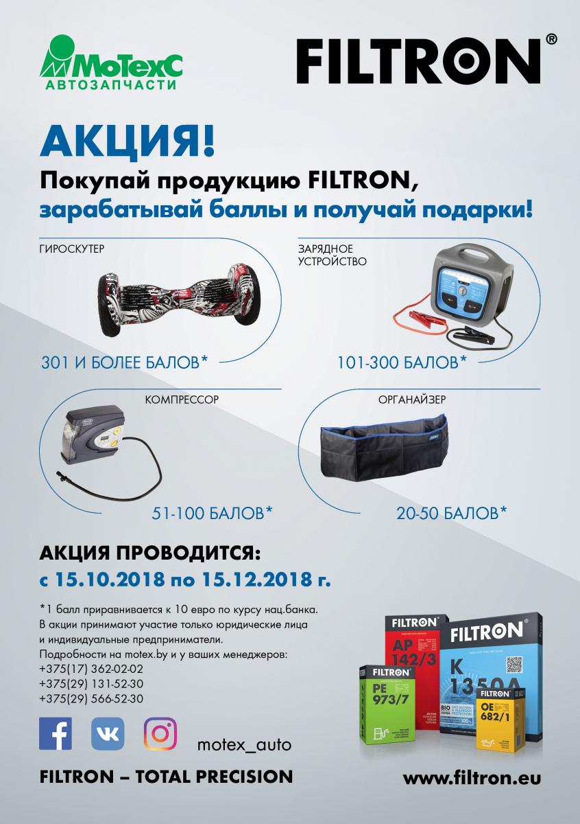 С 15.10.2018 по 15.12.2018 проходит акция Filtron