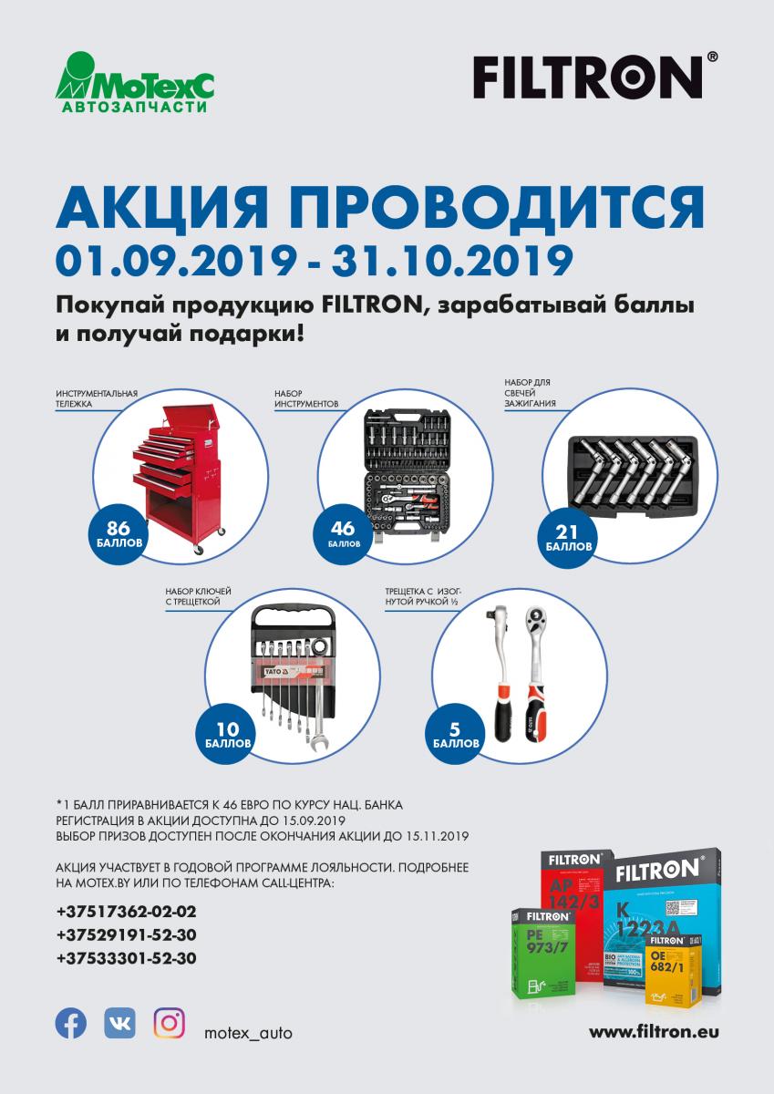 С 01.09.2019-31.10.2019 проходит акция Filtron