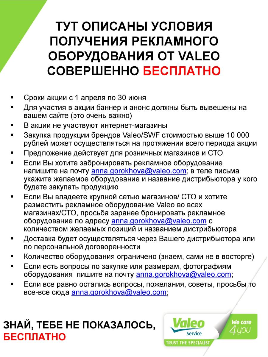 С 01.04.2019-30.06.2019 проходи акция Valeo