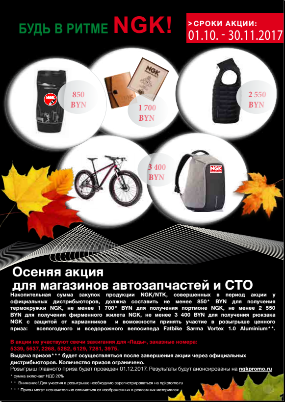 Уважаемые клиенты! C 01.10.2017-30.11.2017 будет проходить акция NGK