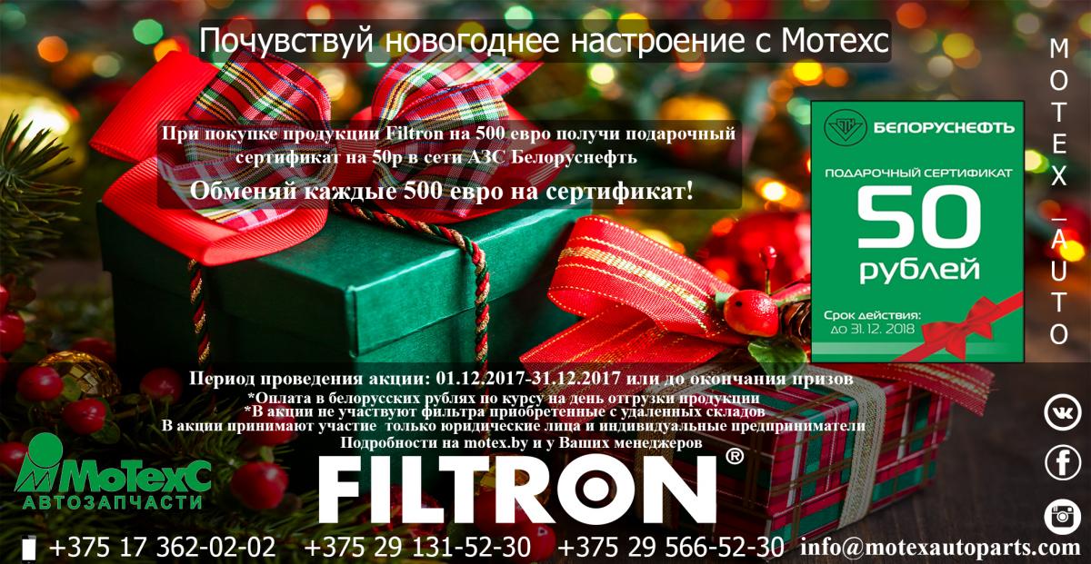Уважаемые клиенты! C 01.12.2017-31.12.2017 будет проходить акция Filtron - почувствуй новогоднее настроение вместе с Мотехс