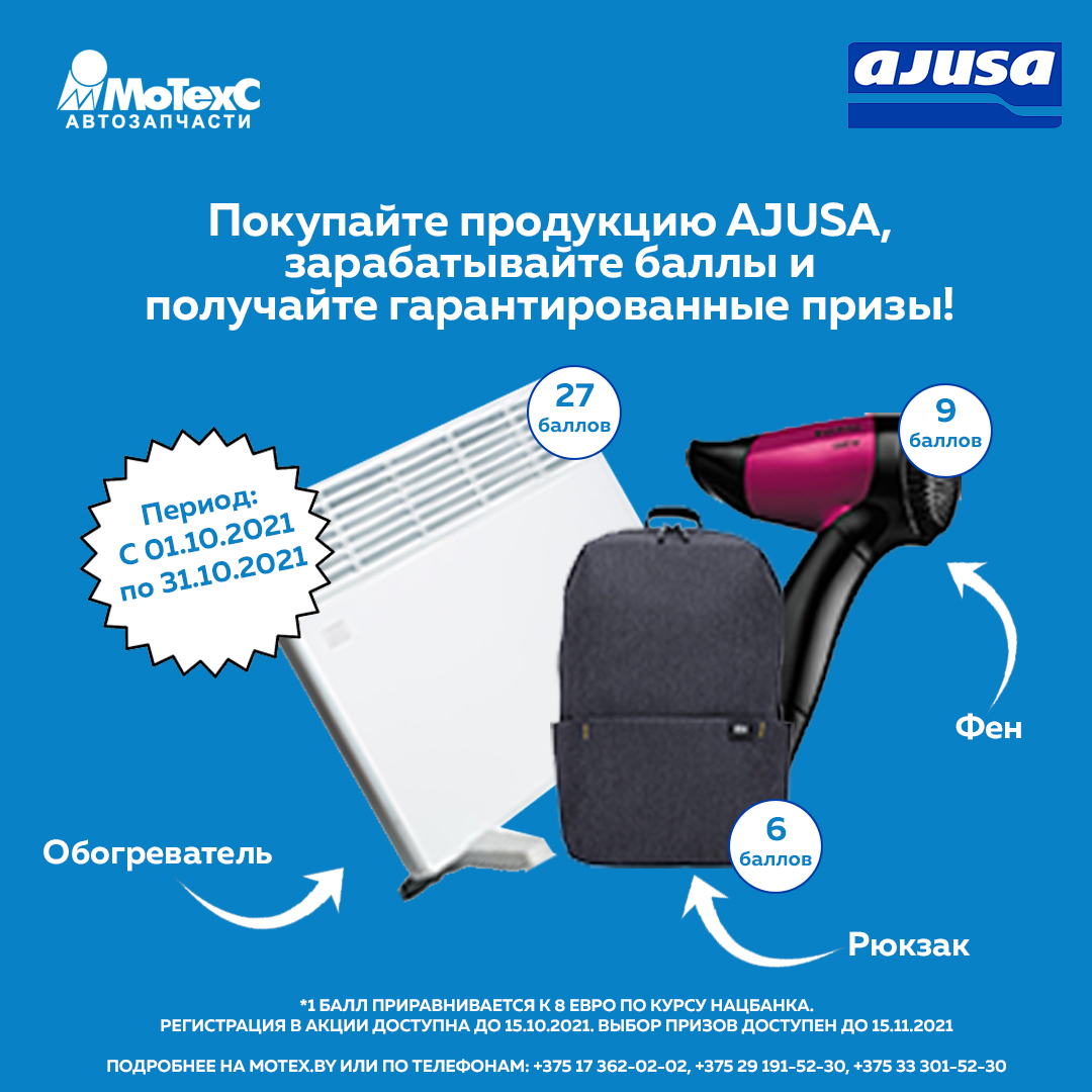 С 01.10.2021-31.10.2021 проходит акция Ajusa