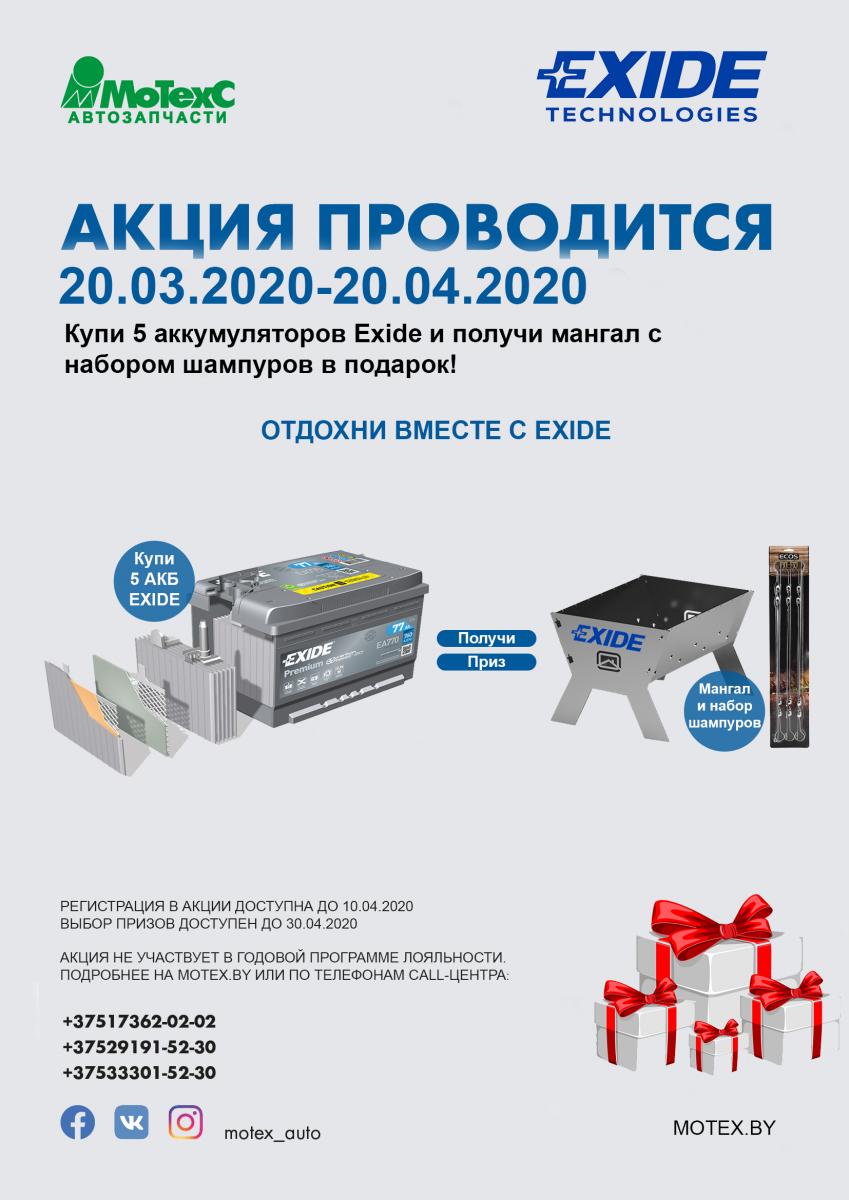 С 20.03.2020-20.04.2020 проходит акция EXIDE