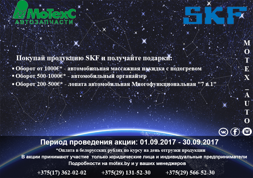 Уважаемые клиенты! C 01.09.2017-30.09.2017 будет проходить акция SKF