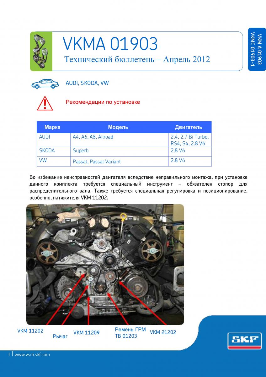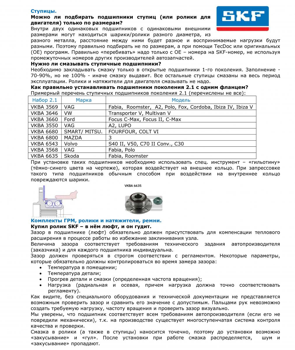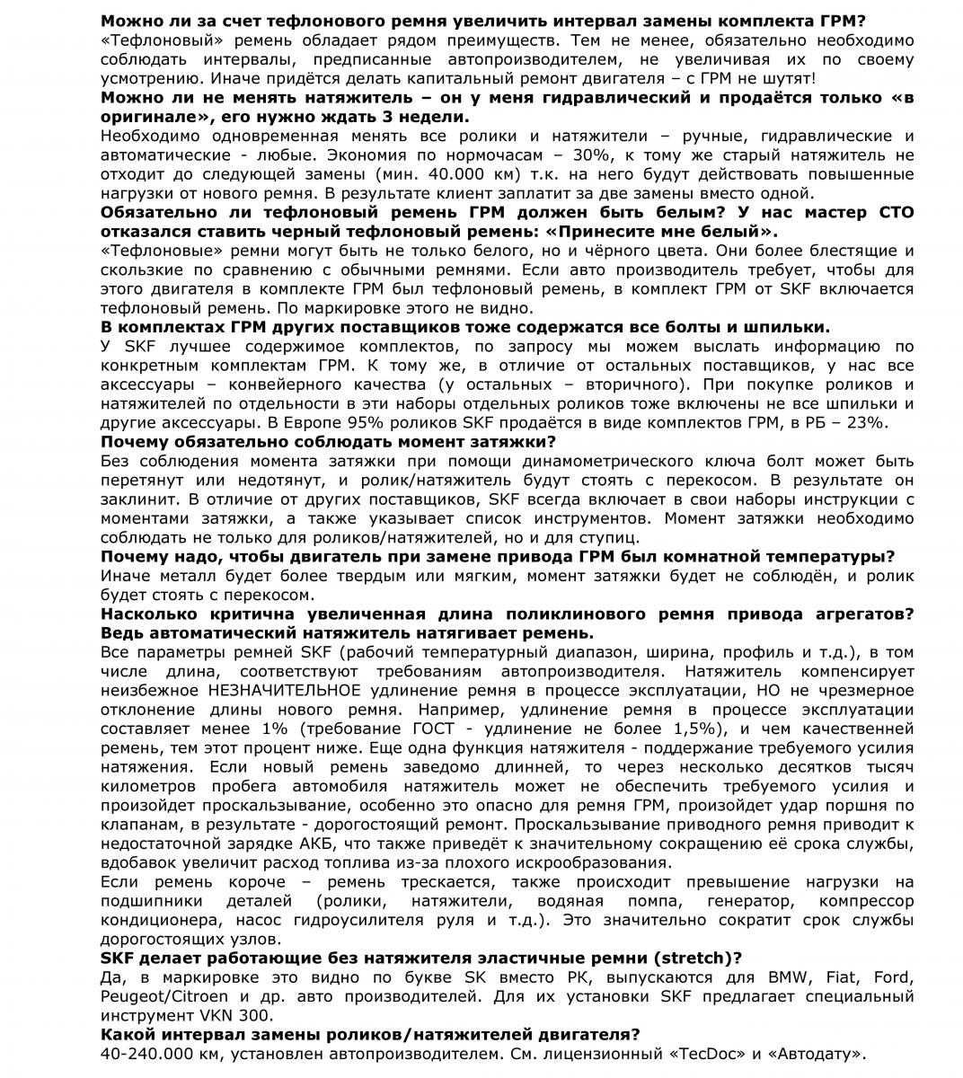 SKF - техническая информация о комплектах ГРМ"