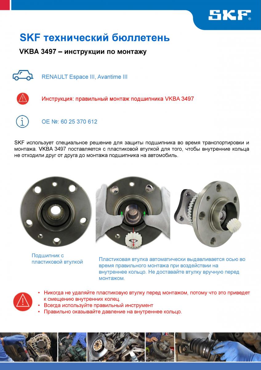 Техническая информация от компании SKF: правильный монтаж подшипника VKBA 3497